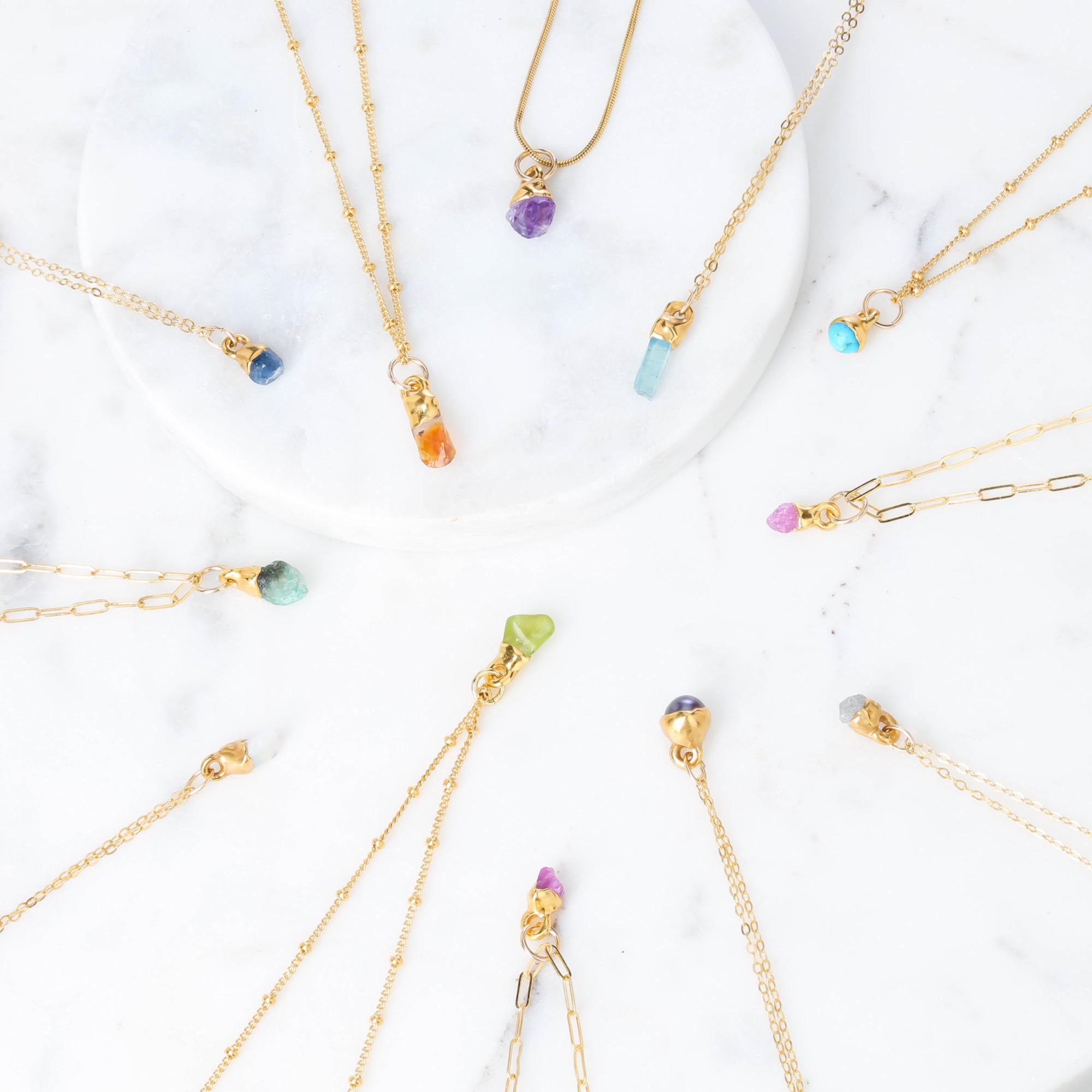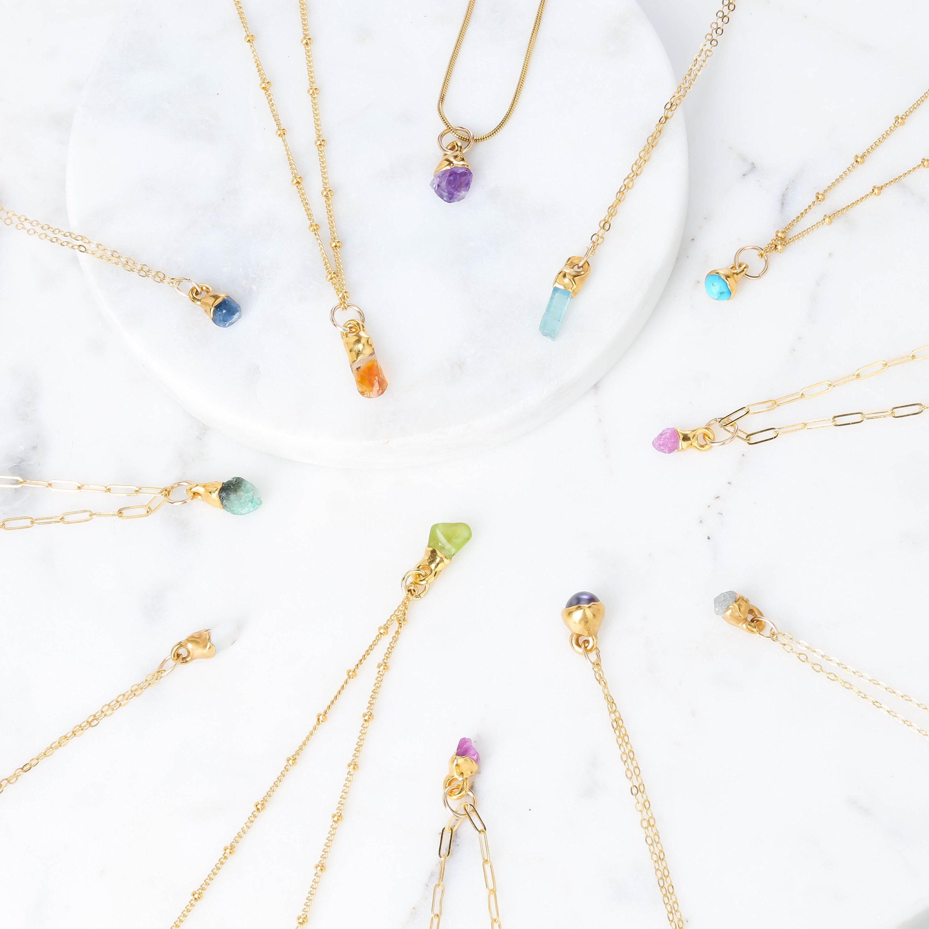 Raw Gemstone Zodiac Constellation Necklace, Custom Birthstone