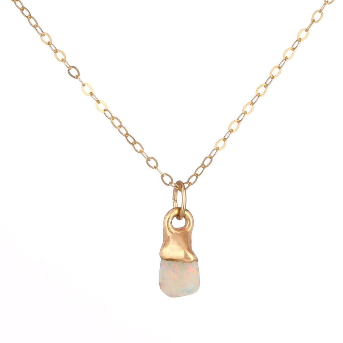 Raw Opal Necklace, October Birthstone, Libra, Gemstone Crystal Pendant, Gold Filled • 24k Dip • Handmade