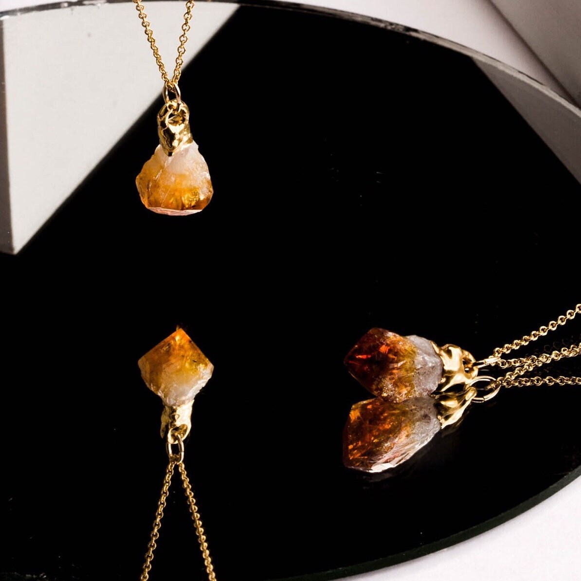 Raw Gemstone Jewelry made with Genuine Rough Citrine Crystals.