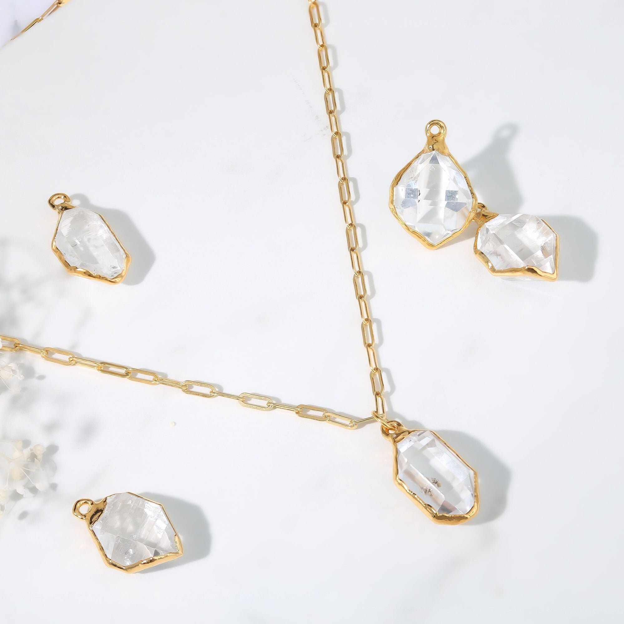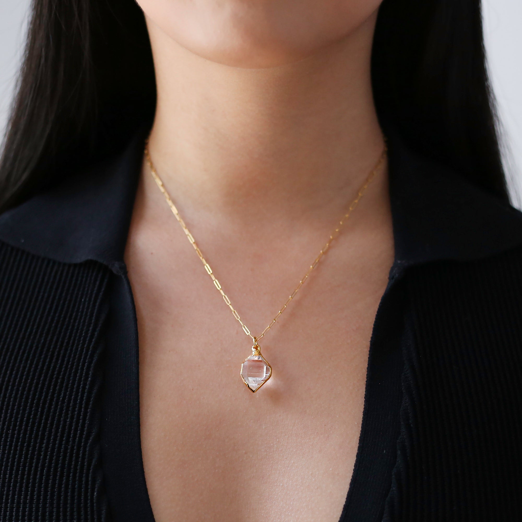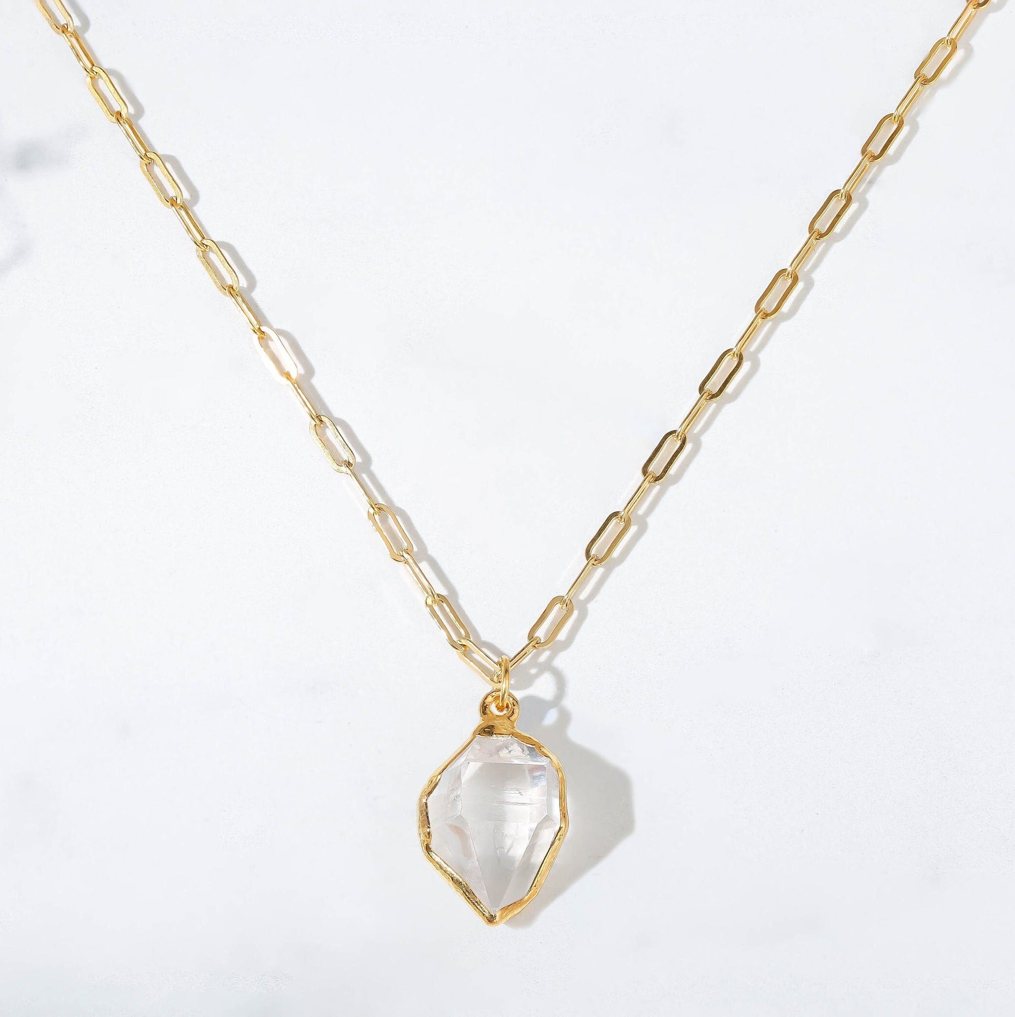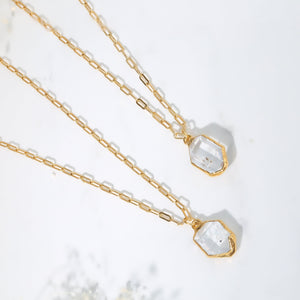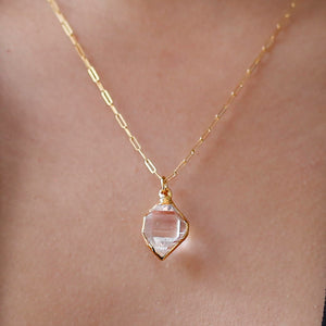 Raw Herkimer Diamond Statement Necklace • Gold Filled • Clear Tibetan Quartz Pendant • Minimalist Fall Jewelry • April Stone • Handmade