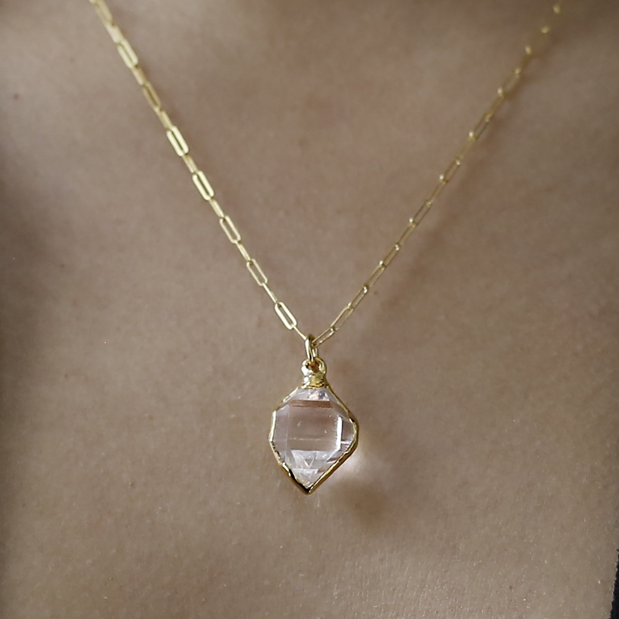 Herkimer Diamond Choker • Crystal Choker • Gothic Cuban Link Choker • Handmade Whimsigoth Jewelry with Raw Gemstones • Curb Chain • 24k Dip