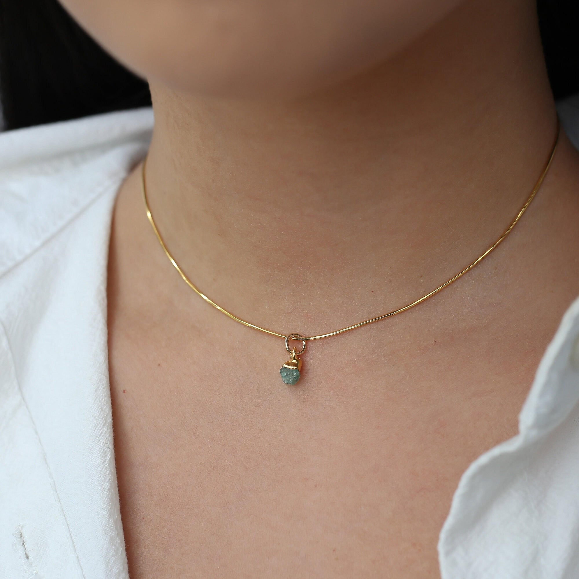 A simple raw crystal choker made with genuine raw emerald gemstones.