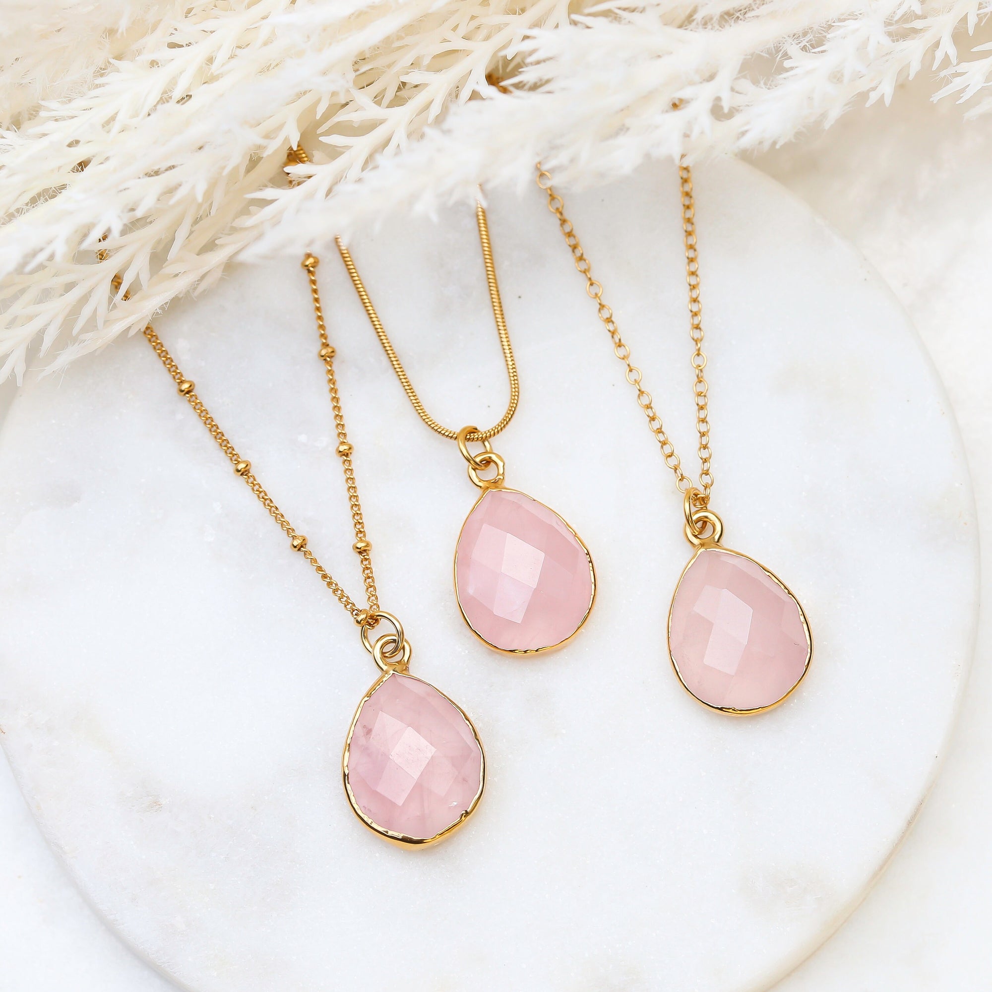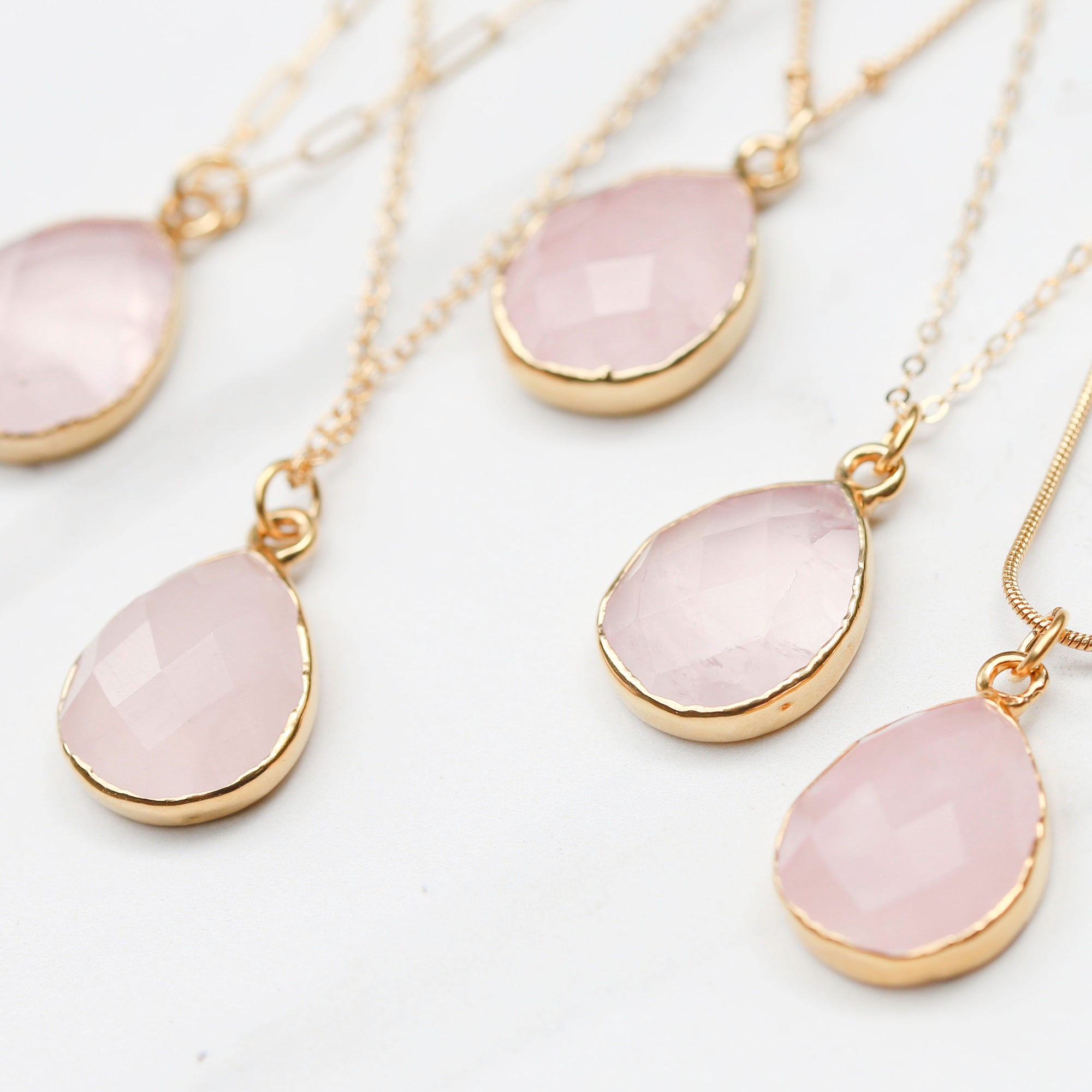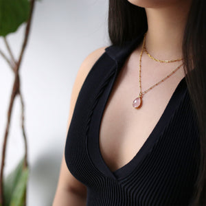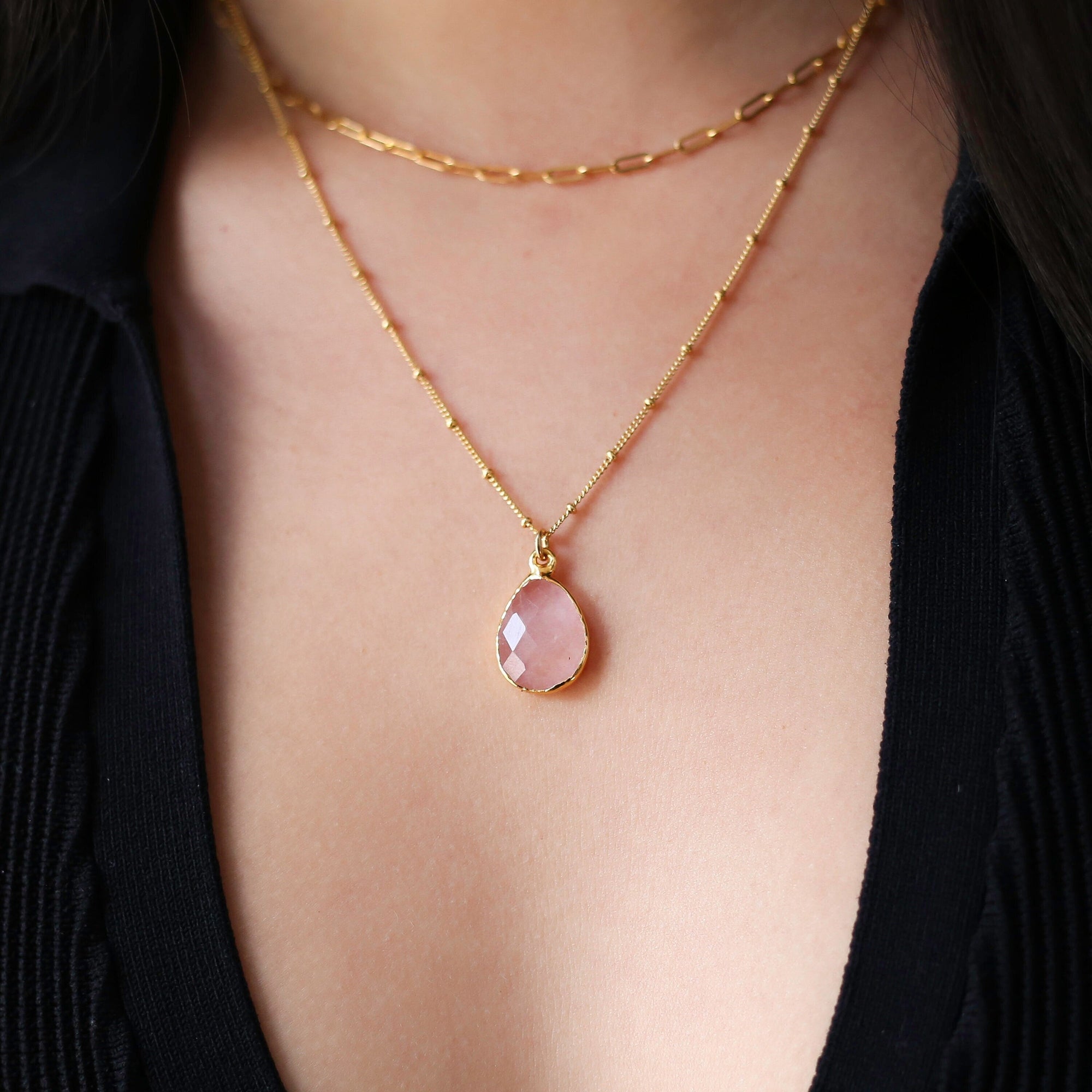 Two Layered Necklace Set • Genuine Rose Quartz • Gold Filled Necklace • Paper Clip Necklace Choker • January Birthstone • Handmade Jewelry