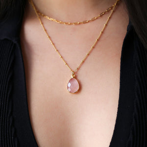 This lovely pink rose quartz double layered necklace set looks lovely stacked, or as a single necklace when you need to tone it down a notch.