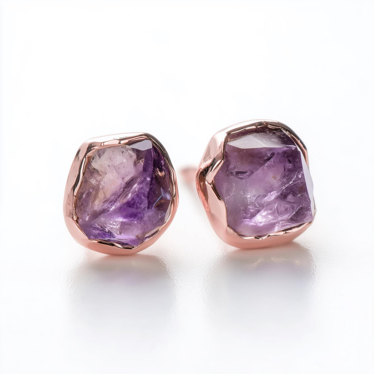Dainty Raw Amethyst Stud Earrings • Rose Gold Fill Amethyst Jewelry • February Birthstone • Genuine Natural Amethyst Crystals • Boho Studs