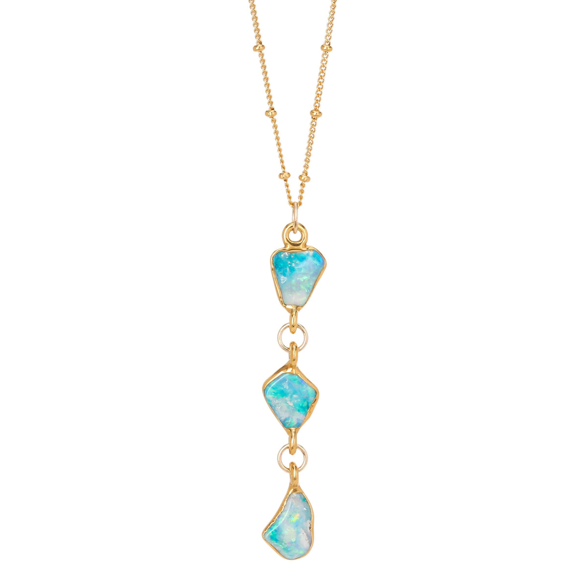 Raw Opal Necklace, October Birthstone, Libra, Gemstone Crystal Pendant, Gold Filled • 24k Dip • Handmade