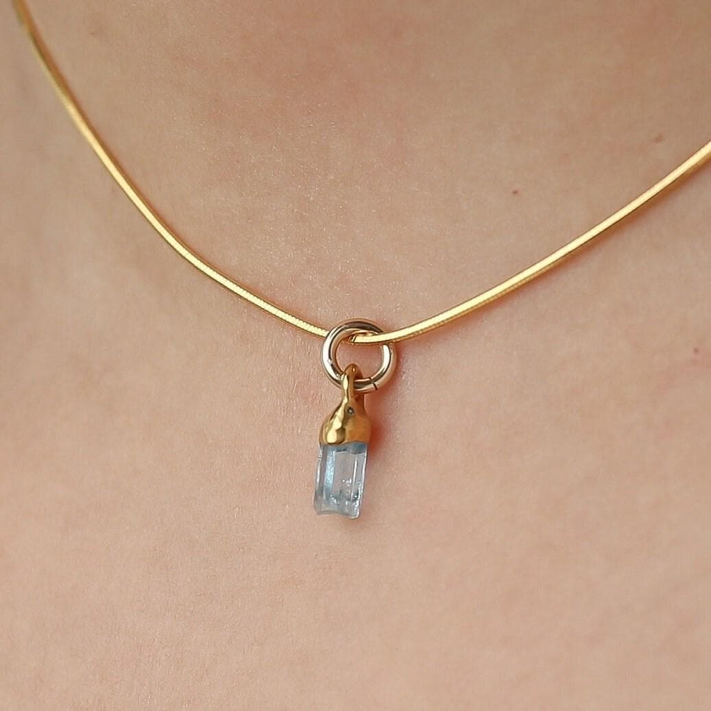 A simple raw crystal choker made with genuine aquamarine gemstones.