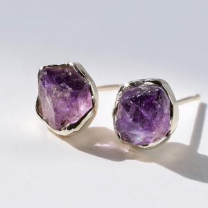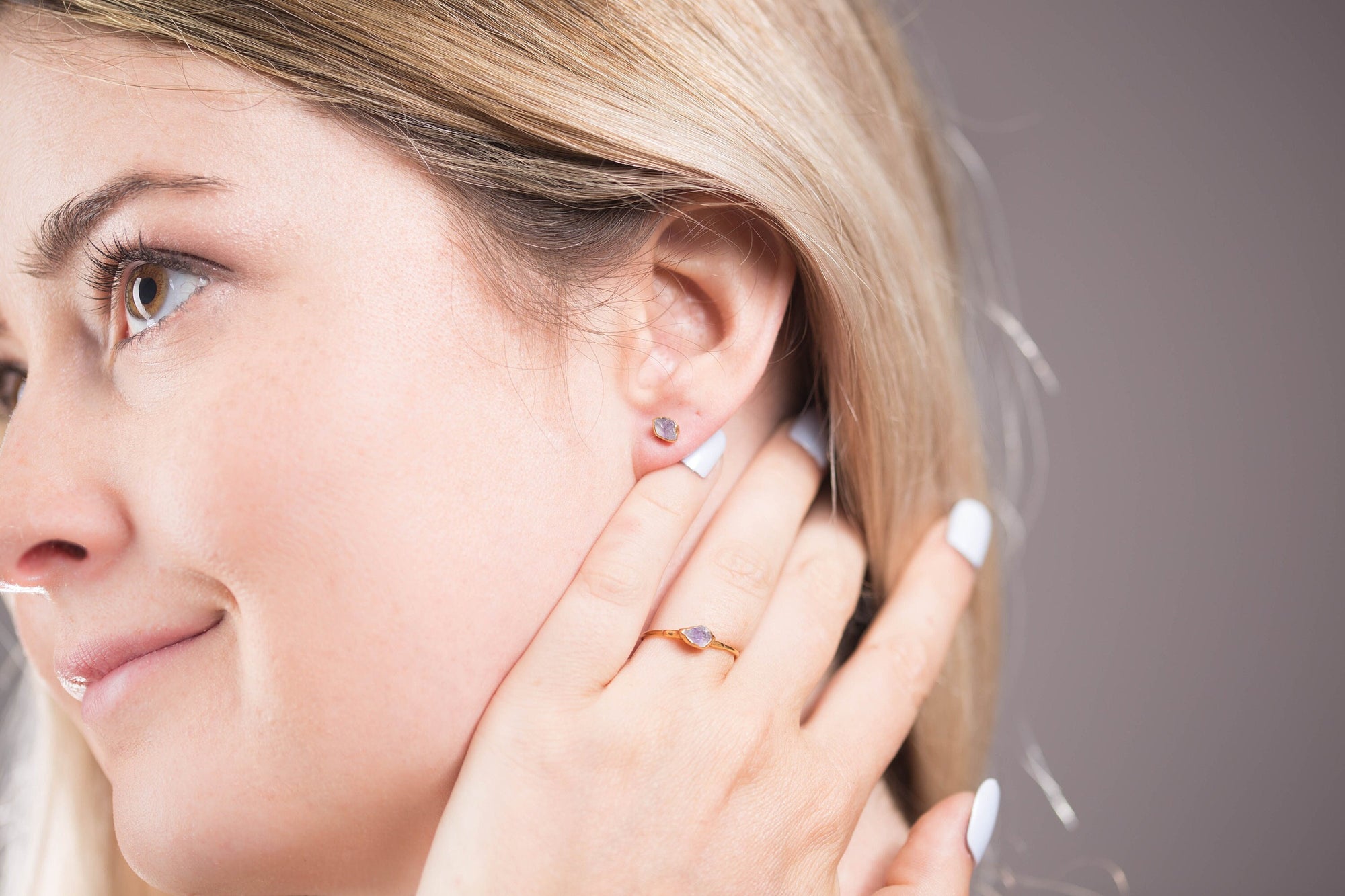 Dainty Raw Amethyst Stud Earrings • Rose Gold Fill Amethyst Jewelry • February Birthstone • Genuine Natural Amethyst Crystals • Boho Studs