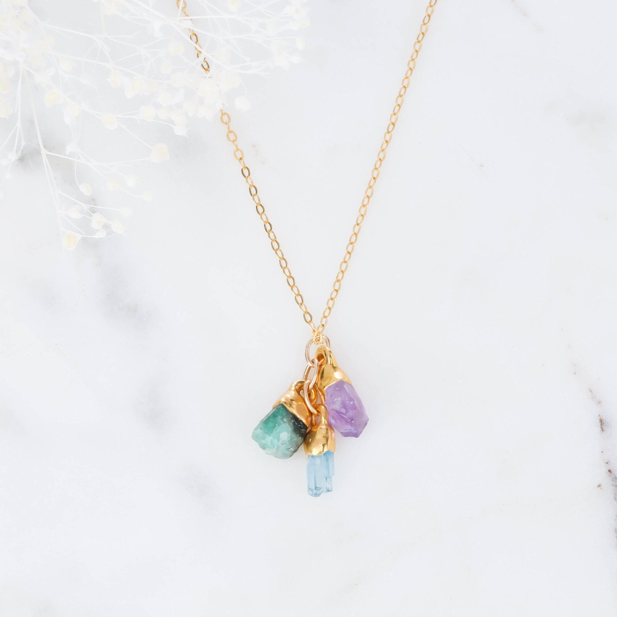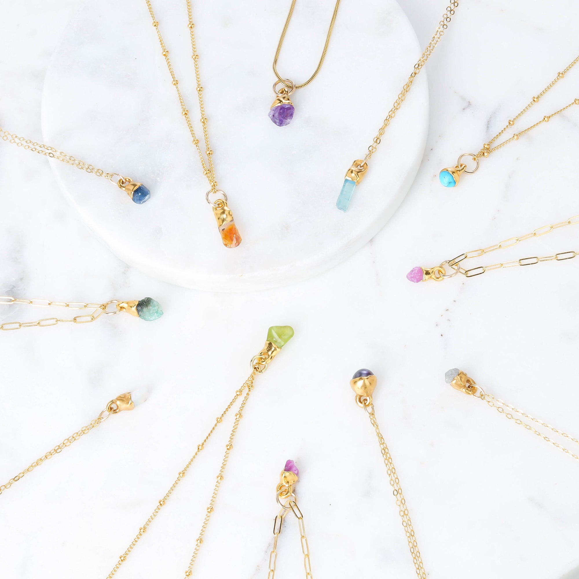 Raw Gemstone Necklace • Personalized Birthstone Pendant • Delicate and Dainty Crystal Jewelry • Perfect for Layering • 24k Dip • Handmade